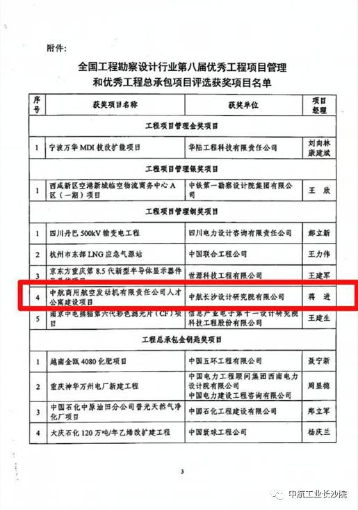 3月20日,從中國(guó)勘察設(shè)計(jì)協(xié)會(huì)傳來喜訊,長(zhǎng)沙院中航商用航空發(fā)動(dòng)機(jī)有限責(zé)任公司人才公寓建設(shè)項(xiàng)目獲得全國(guó)工程勘察設(shè)計(jì)行業(yè)第八屆工程項(xiàng)目管理銅獎(jiǎng)項(xiàng)目。